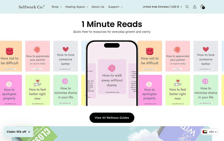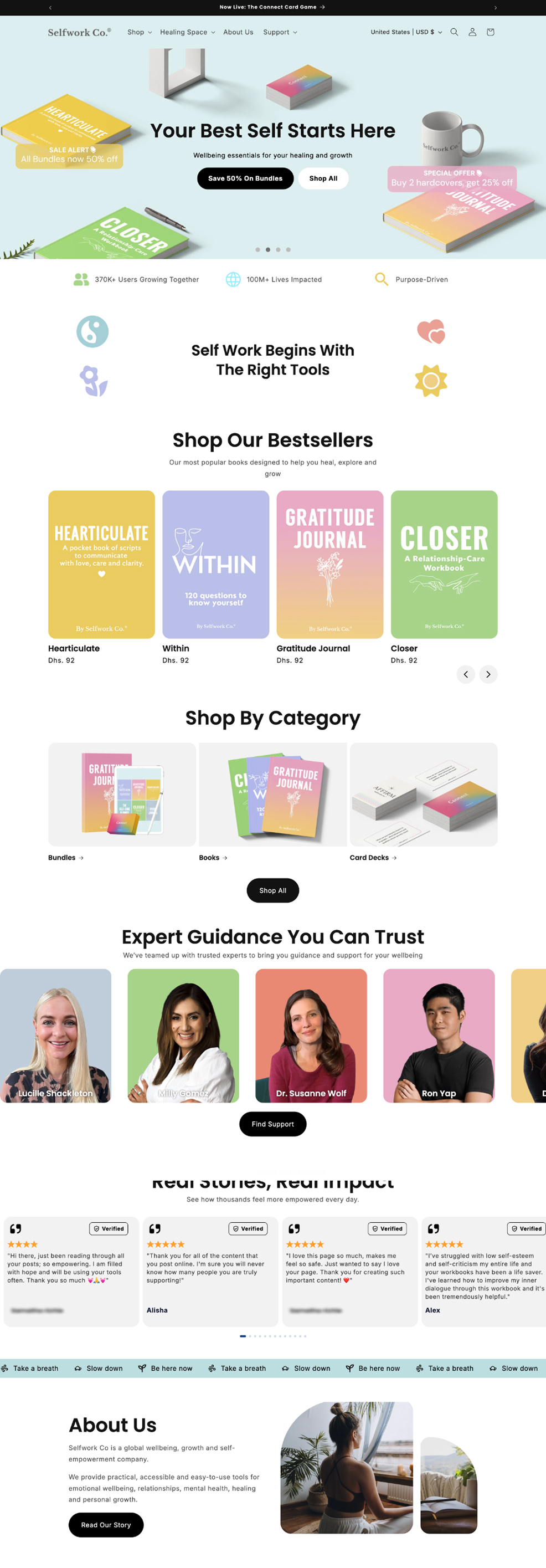 Selfwork Co partnered with us to elevate their digital storefront. We redesigned and developed a site that embodies their mission, practical, empowered wellbeing tools delivered with clarity and warmth. The outcome is a fast, inviting experience rooted in self-growth.